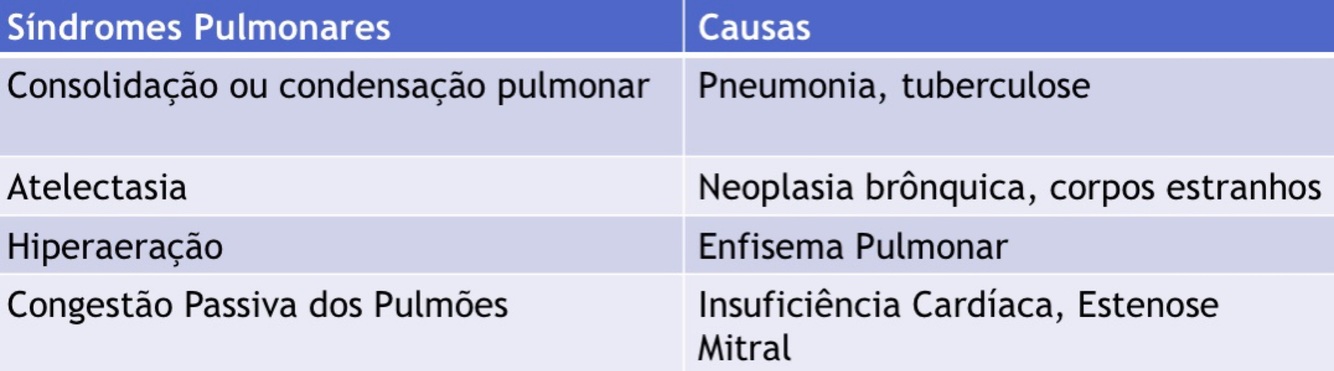 Quais são os 4 tipos de síndromes pulmonares e suas causas?