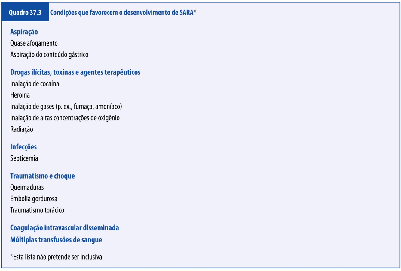 Cite exemplos de condições que podem levar à SARA