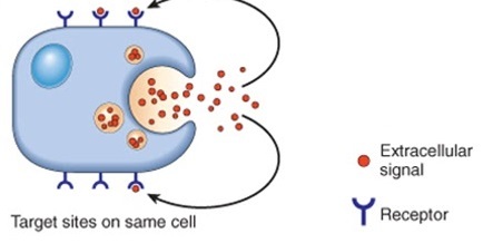 Secretados no meio extracelular e exercem influência sobre as mesmas células que o produziram.