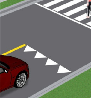 The line of solid white triangles on the road are called yield lines. They indicate that the driver must give way to the traffic and pedestrians.