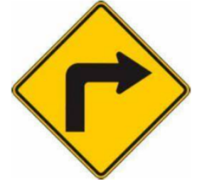 change in direction ## Footnote *This sign warns a driver of a change in direction or a narrowing of the road. You may find several of these signs on the outside of a sharp curve or while approaching a narrow bridge.*