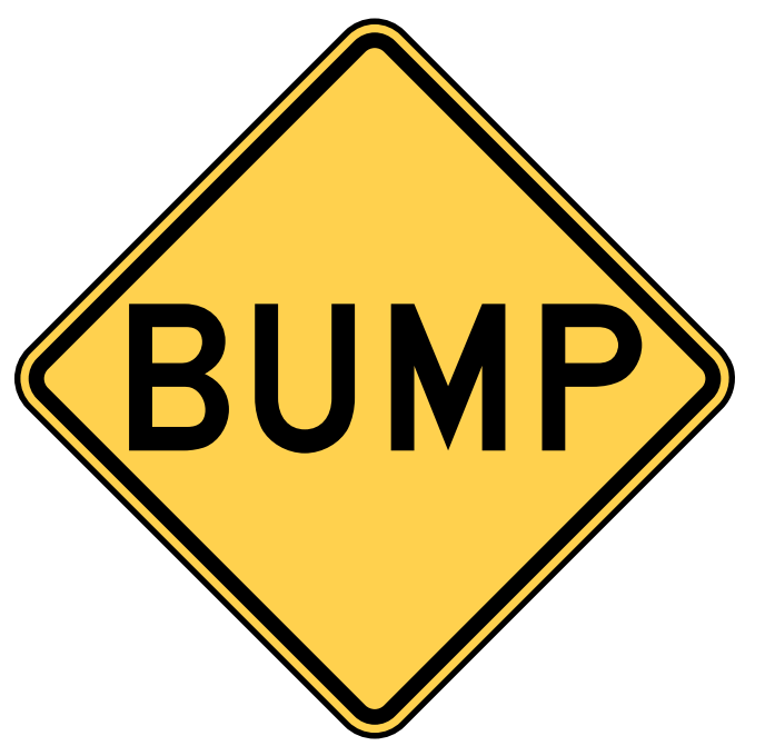 This BUMP sign indicates that the road ahead is bumpy. Reduce your speed to avoid loss of control.