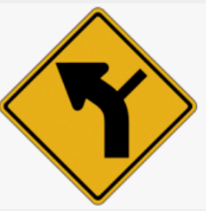 This sign indicates that the main road will curve to the left with a side road entering from the right. If you see this sign, slow down and approach the intersection with extra caution.