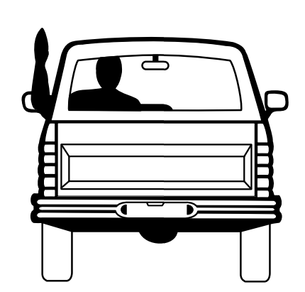The brake and turn signals of the car ahead of you have failed so the driver uses hand gestures to signal instead. What is the driver’s intention in this image?