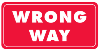 The WRONG WAY sign may accompany the DO NOT ENTER sign. If you see one or both of these signs, drive to the side and stop. When safe, back out or turn around and go back to the road you were on.