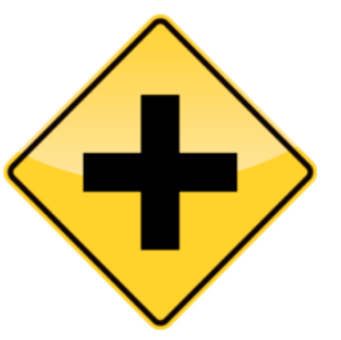 This sign warns drivers of an upcoming intersection or a crossing. Whenever you see this sign, watch out for potential traffic, or be prepared to turn.