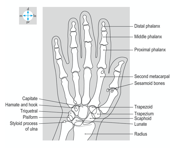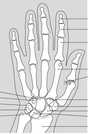 name the major joints of the wrist and hand. which are most likely to be injured