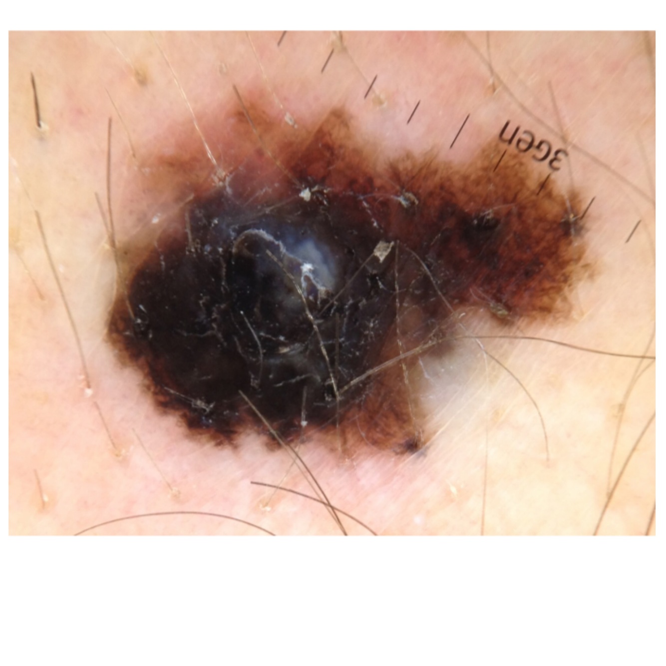 Colour (blue white veil in centre suggests melanoma, pink lesions are concerning )