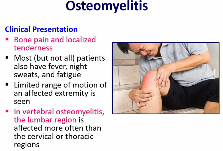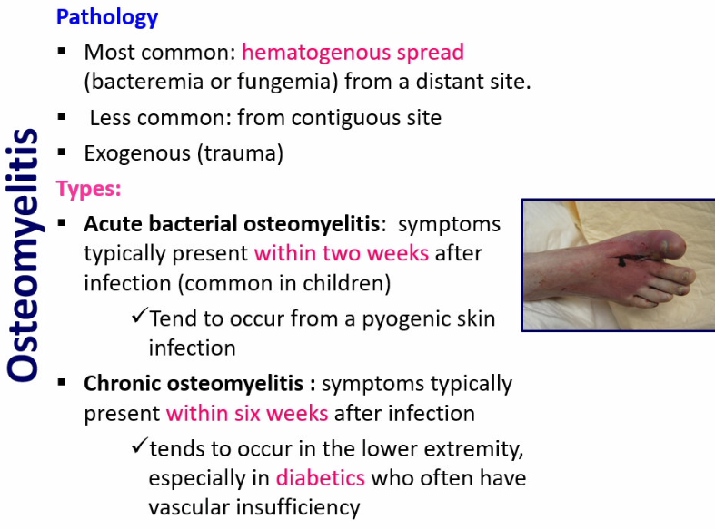 acute bacterial osteomyelitis presents within 2 weeks after infection and is common in children