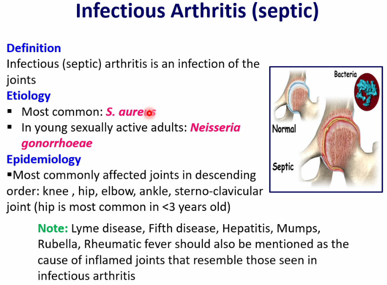 infectious (septic) arthritis is an infection of the joints