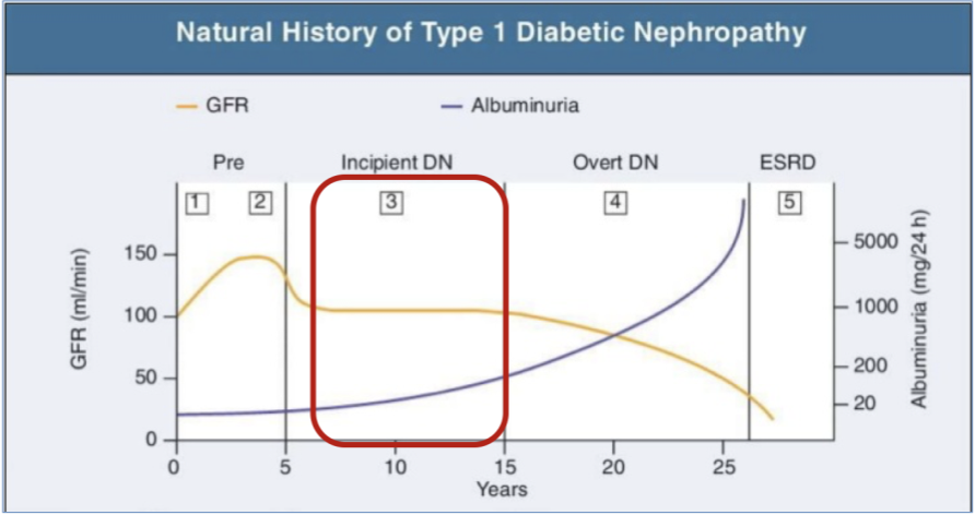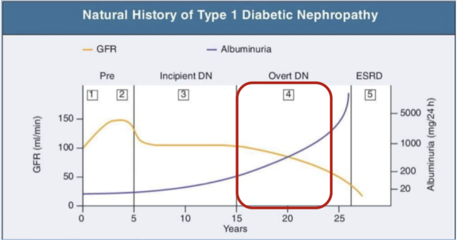 Macroalbuminuria (overt nephropathy) phase of diabetic nephropathy