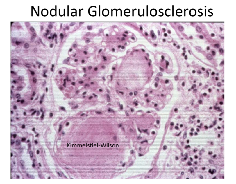 In microalbuminuria (incipient nephropathy) phase of diabetic nephropathy, mesangial matrix expansion leads to nodules called Kimmelstein-Wilson lesions