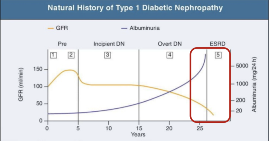 Advanced nephropathy (renal failure) phase of diabetic nephropathy