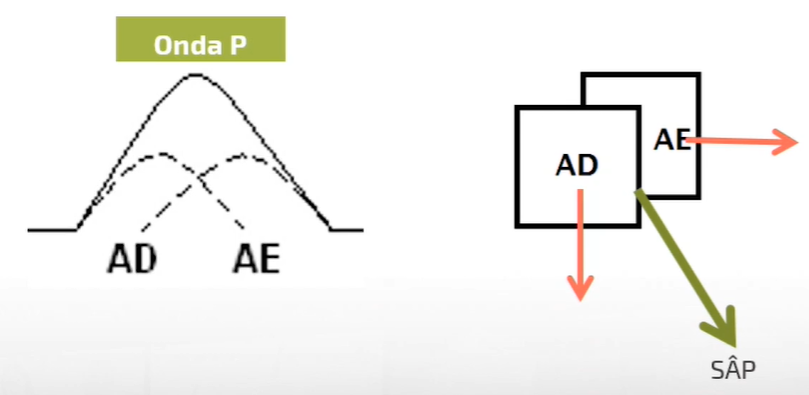 A onda P tem sua porção inicial formada pelo ____ (átrio esquerdo/átrio direito) e sua porção final formada pelo (átrio esquerdo/ átrio direito)