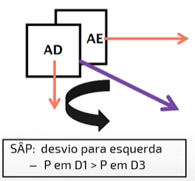 Desvio do eixo para ESQUERDA (o vetor do átrio direito é mais prolongado, o que gera uma rotação para cima do SÂP) resultando em DI MAIOR DO QUE DIII