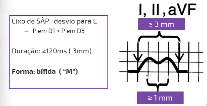 Duração da onda P > 120 ms (duração superior a três quadradinhos)
