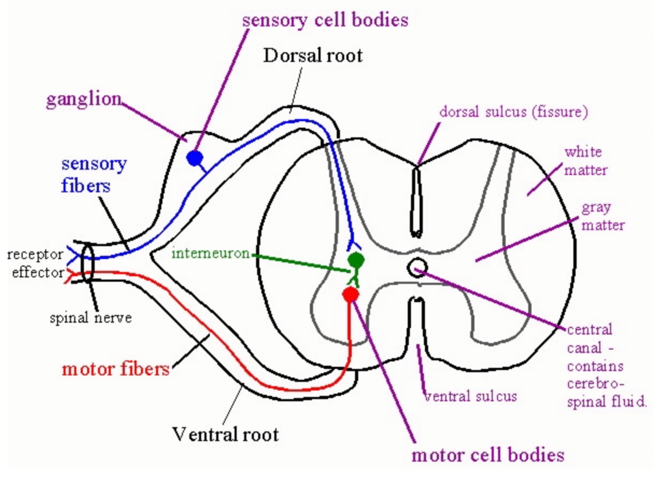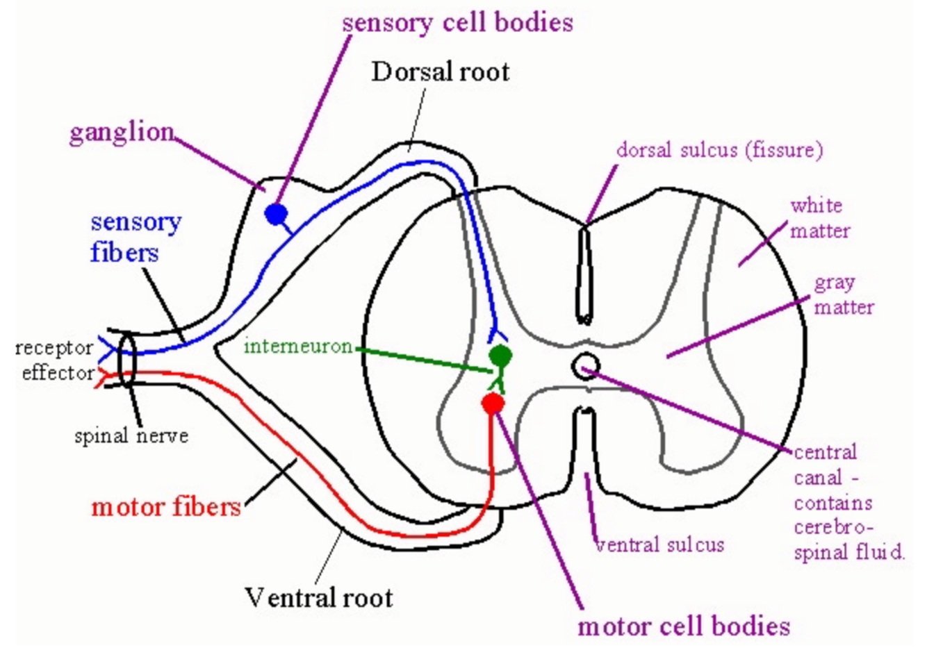 Which neurons have their cell bodies in the ventral horn