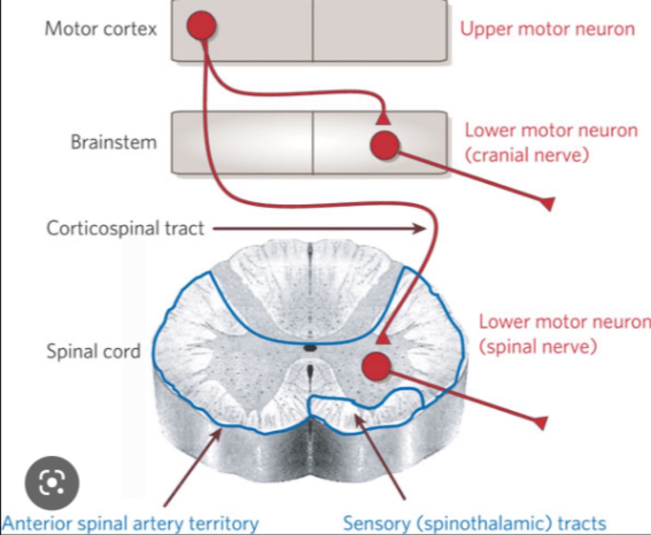 At what point does the UMN become the LMN