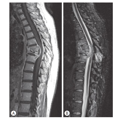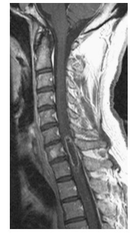 positive in 60% of patients. MRI is able to visualize the degree of cord compression and extent of