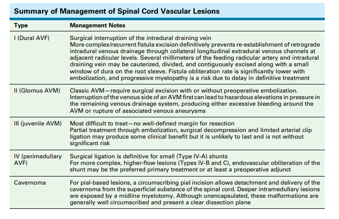 Successful treatment of spinal vascular malformations requires the total obliteration or excision of the abnormal shunt. Procedures that only partially reduce the shunt or address only proximal feeders may provide temporary benefit but all too often lead to delayed recurrences and