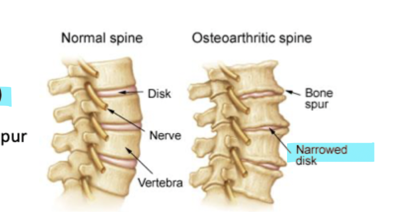 after examining a patient with suspected osteoarthritis in the spine, what can be noticed?