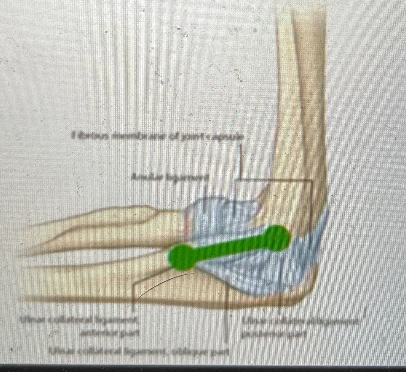 Anterior band which attaches on the sublime tubercle (tight in extension and active especially between 30-90 deg elbow flexion)