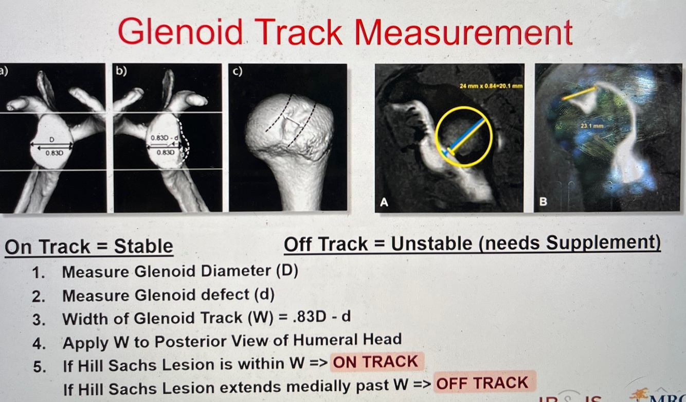 Shoulder instability—- off track indicates…
