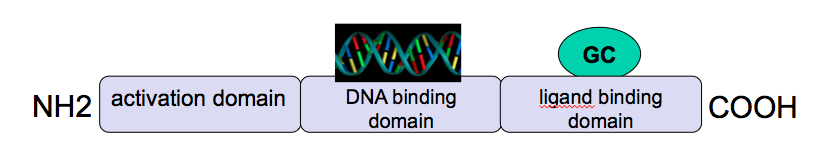 1. NH2 - activation domain - DNA binding domain - ligand binding domain - COOH