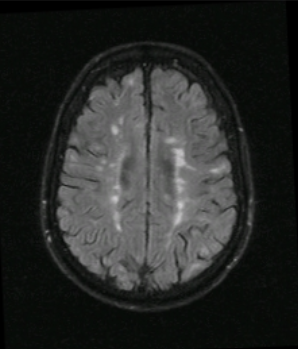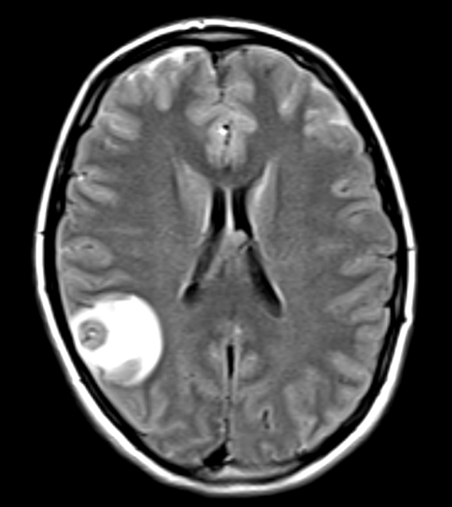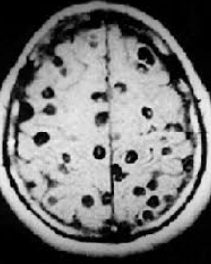 Adult onset seizure in an immigrant from Argentina (5 years ago). No PMH. PE normal. CBC and CMP WNL. MRI shown below:
