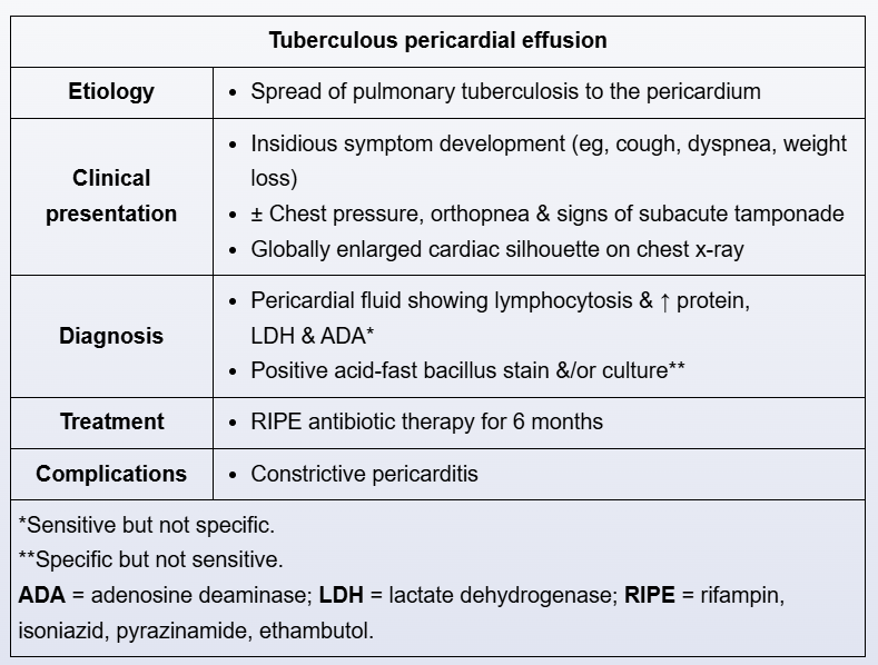 Immigrant with chest discomfort, sob, hemoptysis, and cxr shows enlarged cardiac silouette