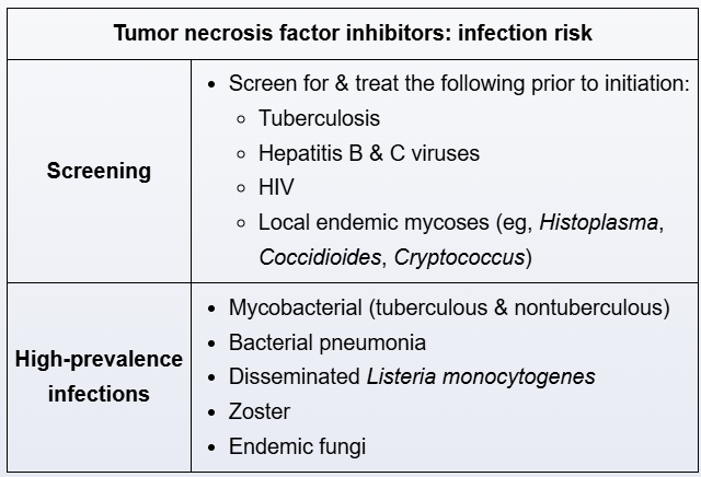 TNFa inhibitors increase risk for what infections?