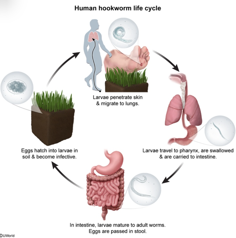A patient from a resource limited region presenting with bloating, nausea, and diarrhea for several months. Peripheral eosinophilia.