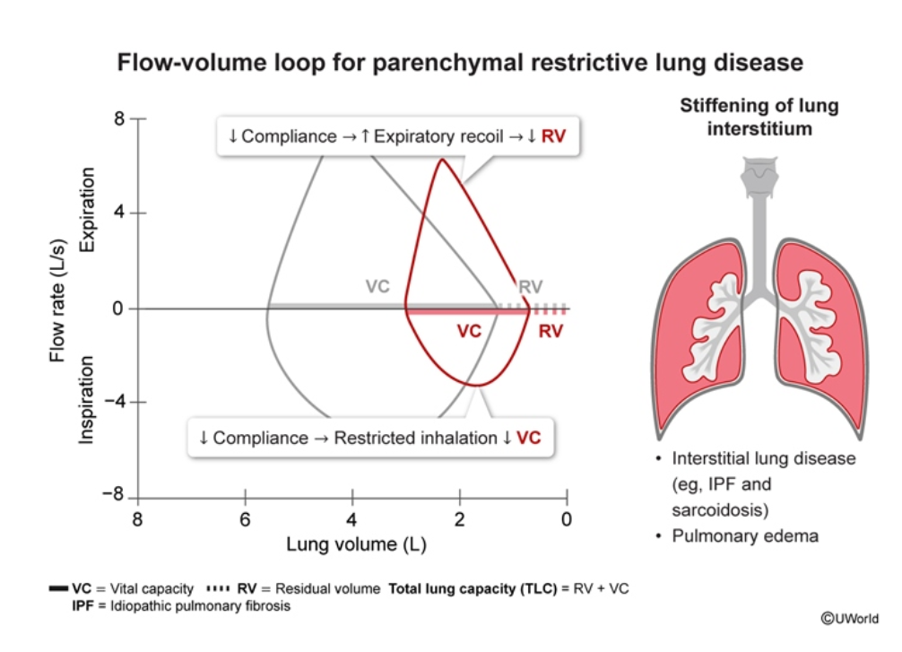 What flow volume changes would we expect in restrictive lung disease?