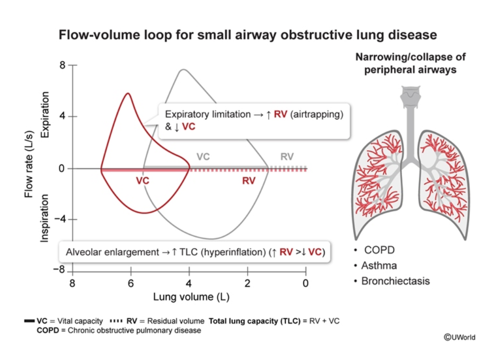 What flow changes would we expect in someone with asthma or COPD?