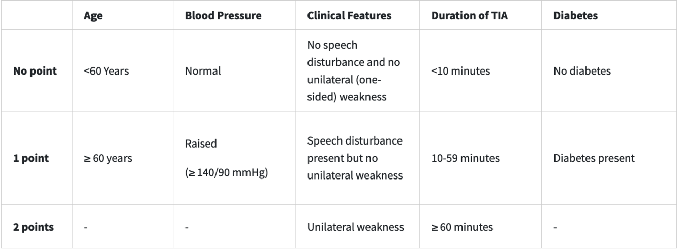 ABCD2 scoring system + 2- and 7-day risk for stroke at each risk level