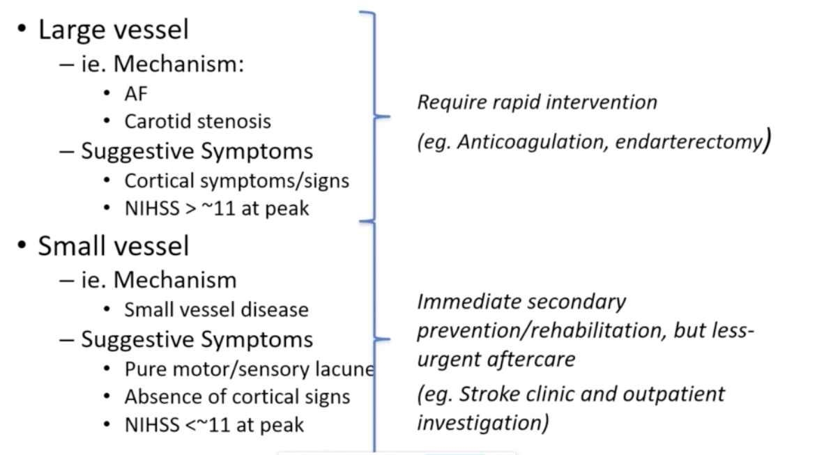 Acute treatment of Stroke includes (large vessel vs small vessel):