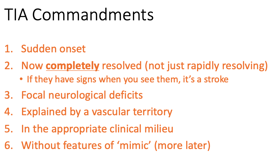 What are the TIA Commandments / what constitutes a TIA?