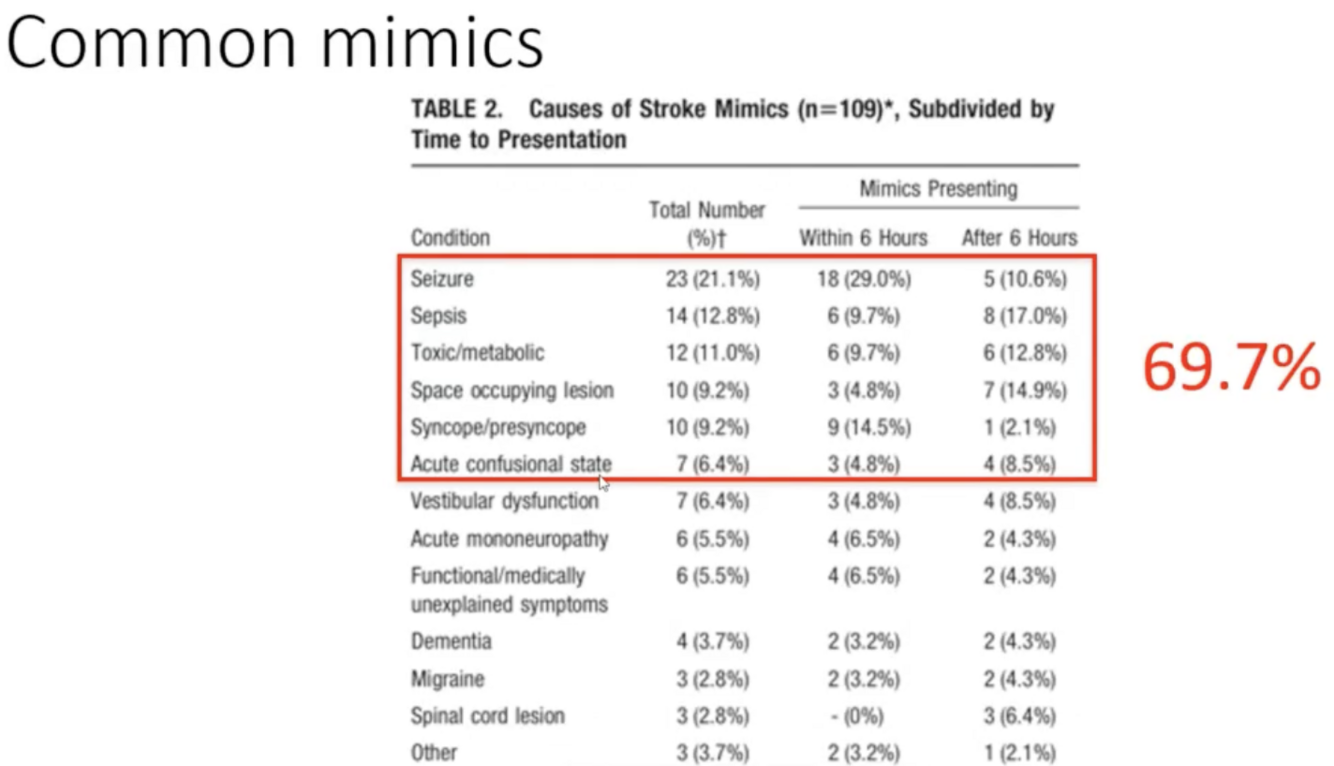 It is also important because if a vascular territory cannot be determined and deficits are more generalised / over many vascular territories then diagnositic mimics are more likely.