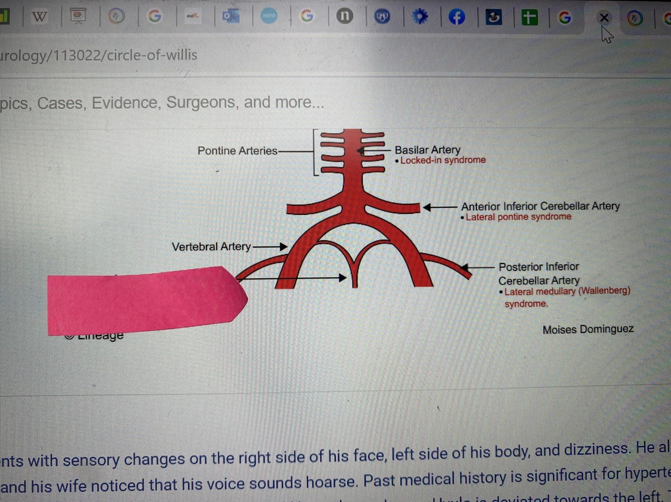 IPs. Facial loss of P&T, horners, hoarseness dysphasia