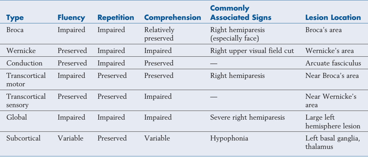 What are the different types of aphasia?