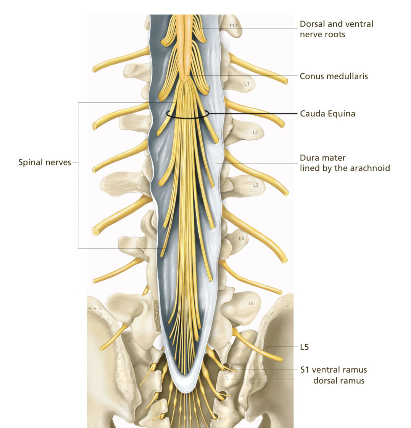 - essentially below where the spinal cord ends