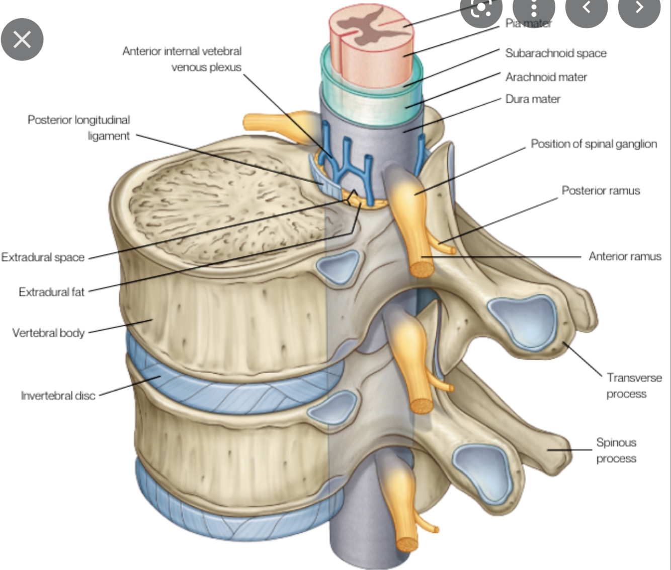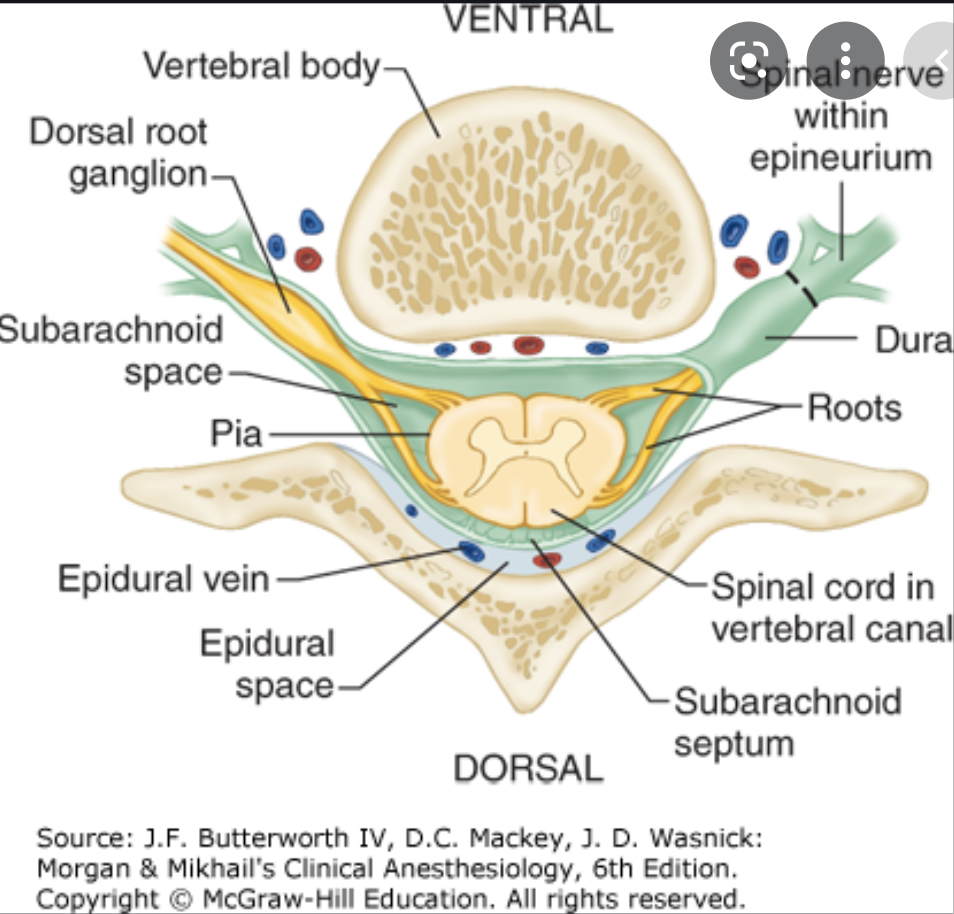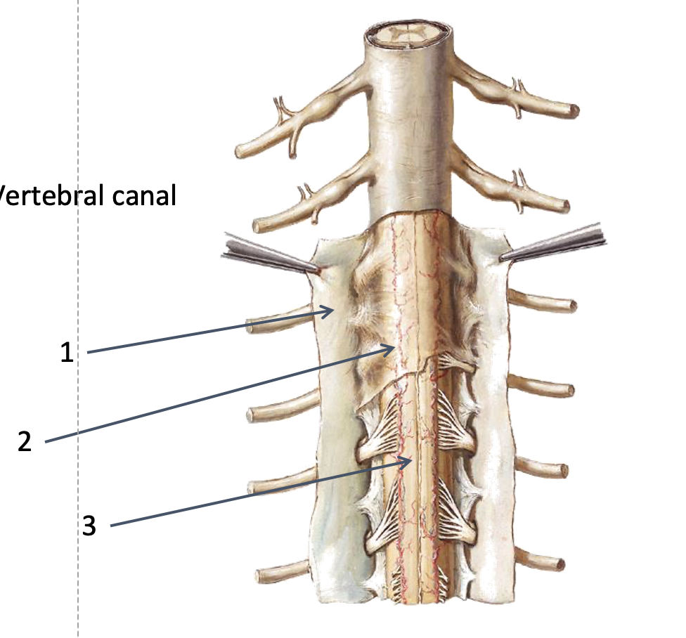 1 - epidural space (epi = above and dural = dura mater
