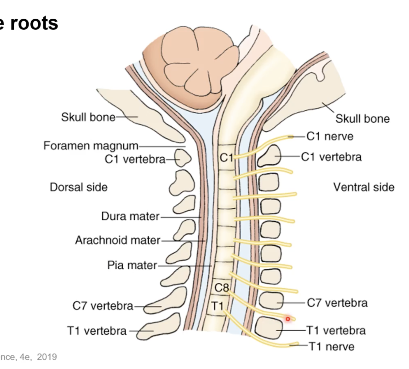 In the cervical part of the spine there are 7 vertebrae, but 8 pairs of spinal nerves. How do the nerves leave the cervical vertebrae given there are more pairs of nerves than there are vertebrae?