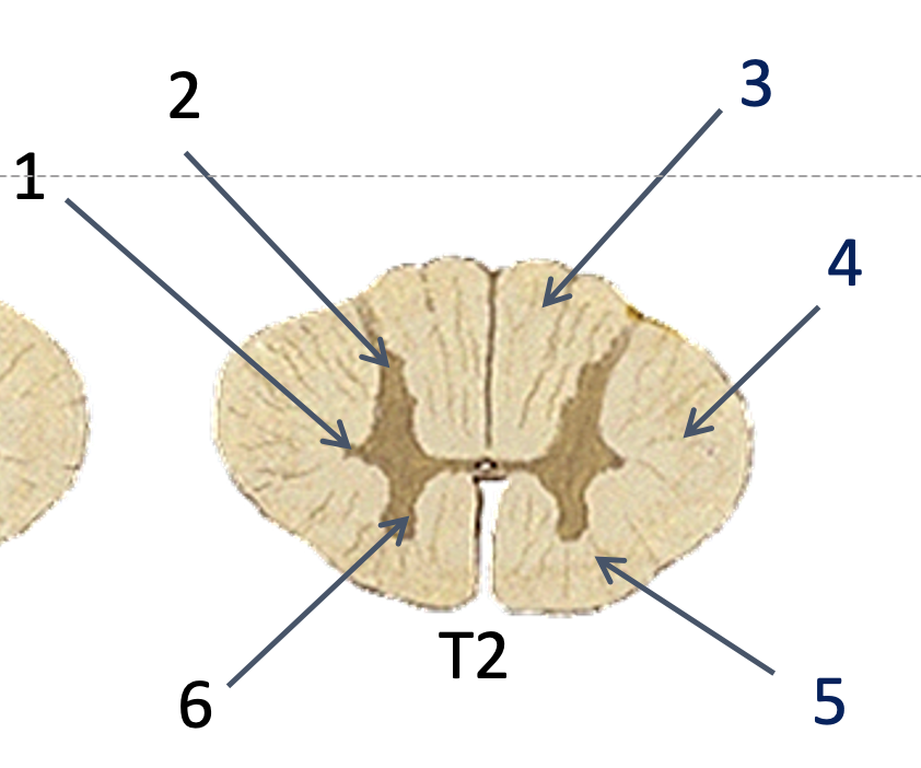 Label the different parts of the T2 aspect of the spinal cord numbered 1-6 using the labels below: