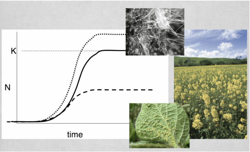 -parasites or pathogens (like the aphids) my lower carrying capacity if individuals must spread out to avoid infecting others