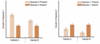The graphs below show growth of Species 1 in Habitats A and B when Species 2 is present and absent (left graph) and the growth of Species 2 in Habitats A and B when Species 1 is present and absent (right graph). Complete the bar graphs with data that represent the following species interactions: Competition