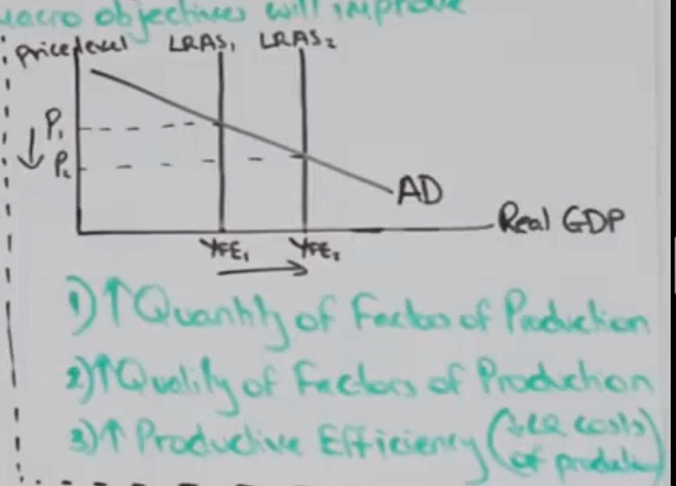KEY POINTS TO INCLUDE: INCREASE QUANTITIY OF FACTORS OF PRODUCTION, INCREASED QUALITY OF FACTORS OF PRODUCTION, LOWERS COST OF PRODUCTION