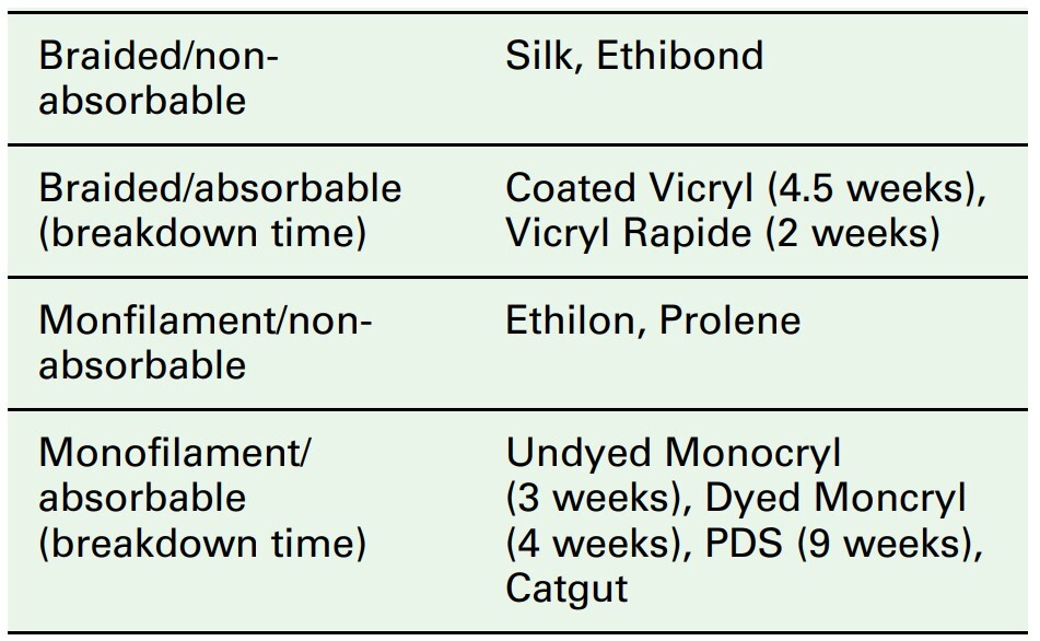 Suture choice will depend on tensile strength