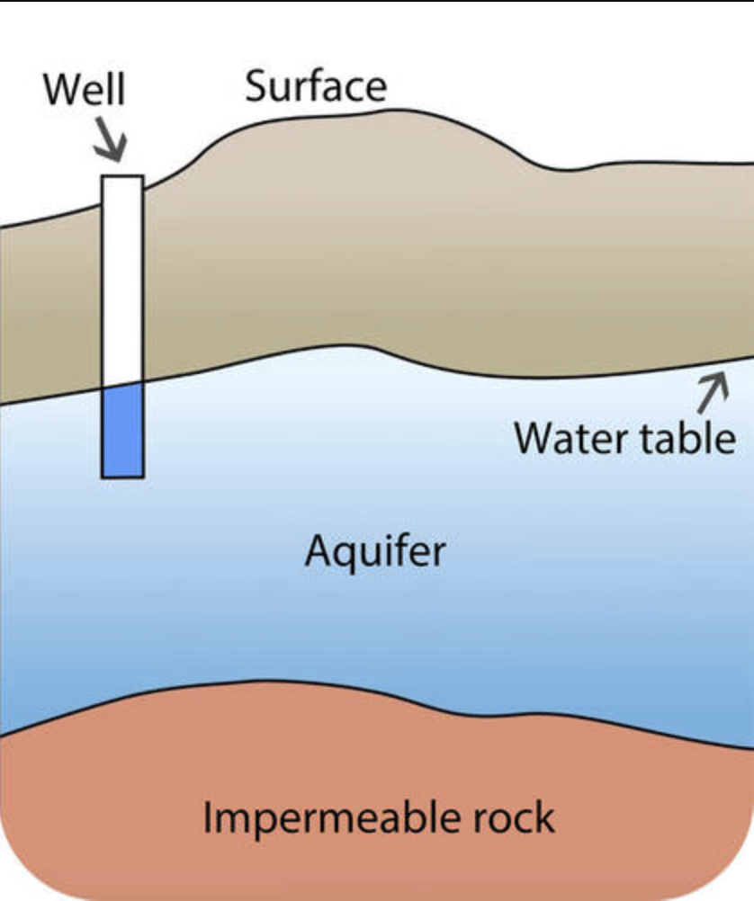 Pore spaces found within permeable layers of rock and sediment underneath the soil that store groundwater