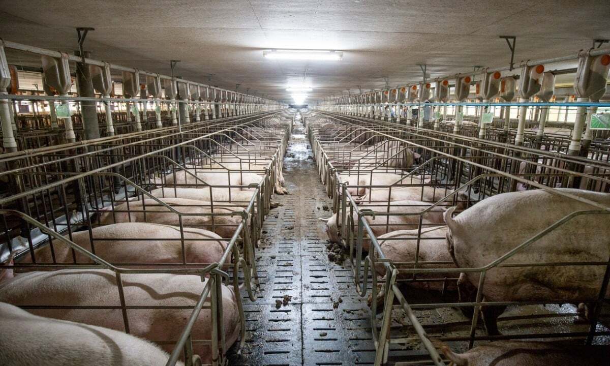 A large indoor or outdoor structure designed for maximum occupancy of animals and maximum output of meat